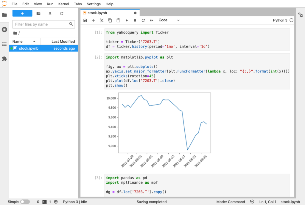 で OK です。Docker 停止後も JupterLab で作成したファイルが残るように、ホストPC の ./notebooks ディレクトリを使うようにしています。