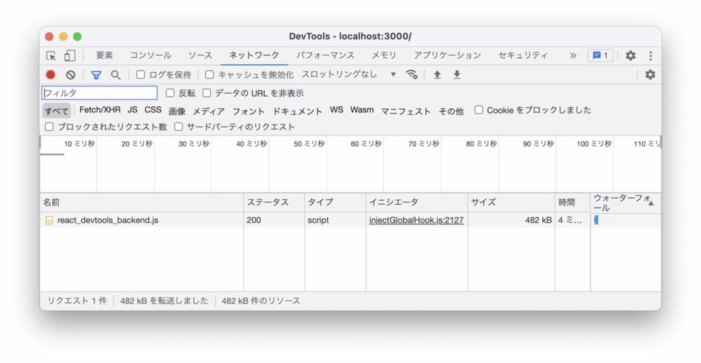 すると DevTools が開くので、「ネットワーク」タブを選択します。