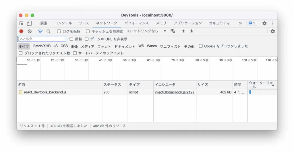 すると DevTools が開くので、「ネットワーク」タブを選択します。