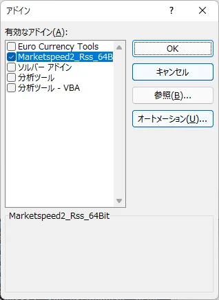 64ビットなら「MarketSpeed2_RSS_64bit.xll」