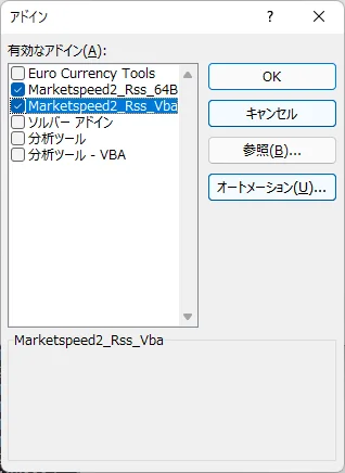 「マーケットスピード II RSS」 のアドインをExcelに登録
