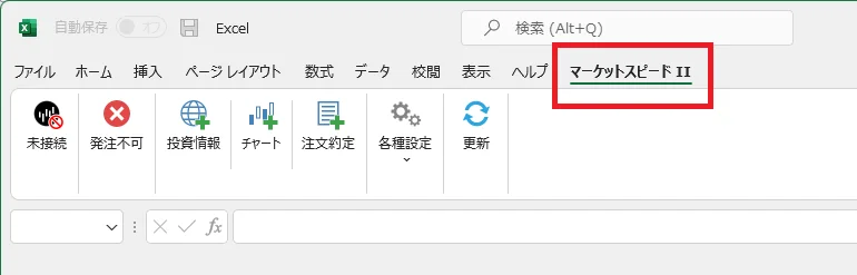 8. Excel に「マーケットスピード II」のタブが増えれば完了です。
