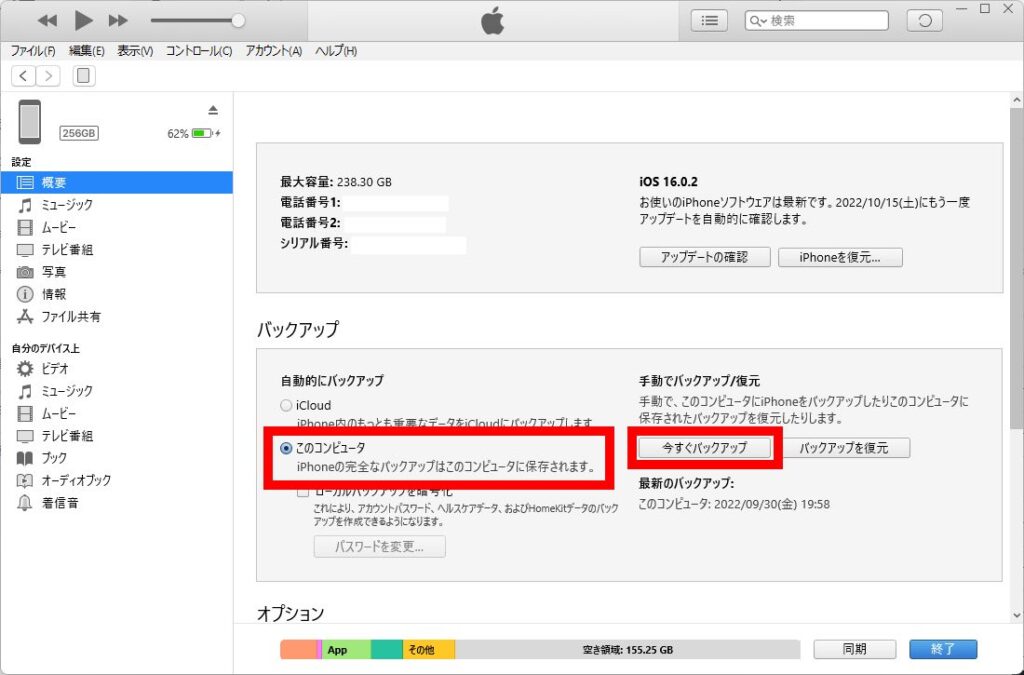 既にバックアップしたことがある場合、「C:¥Users¥ユーザー名¥Apple¥MobileSync¥Backup」を移動するか削除しておく
