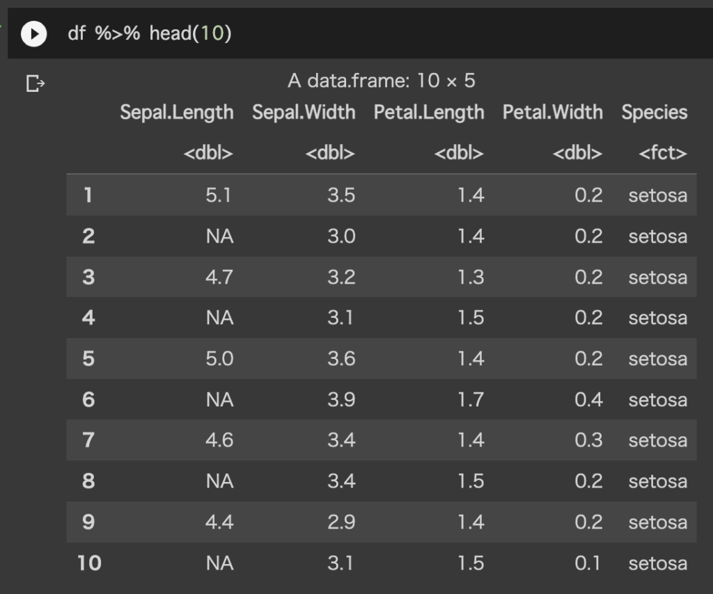 df %>% filter(is.na(Sepal.Length)) %>% head(10)