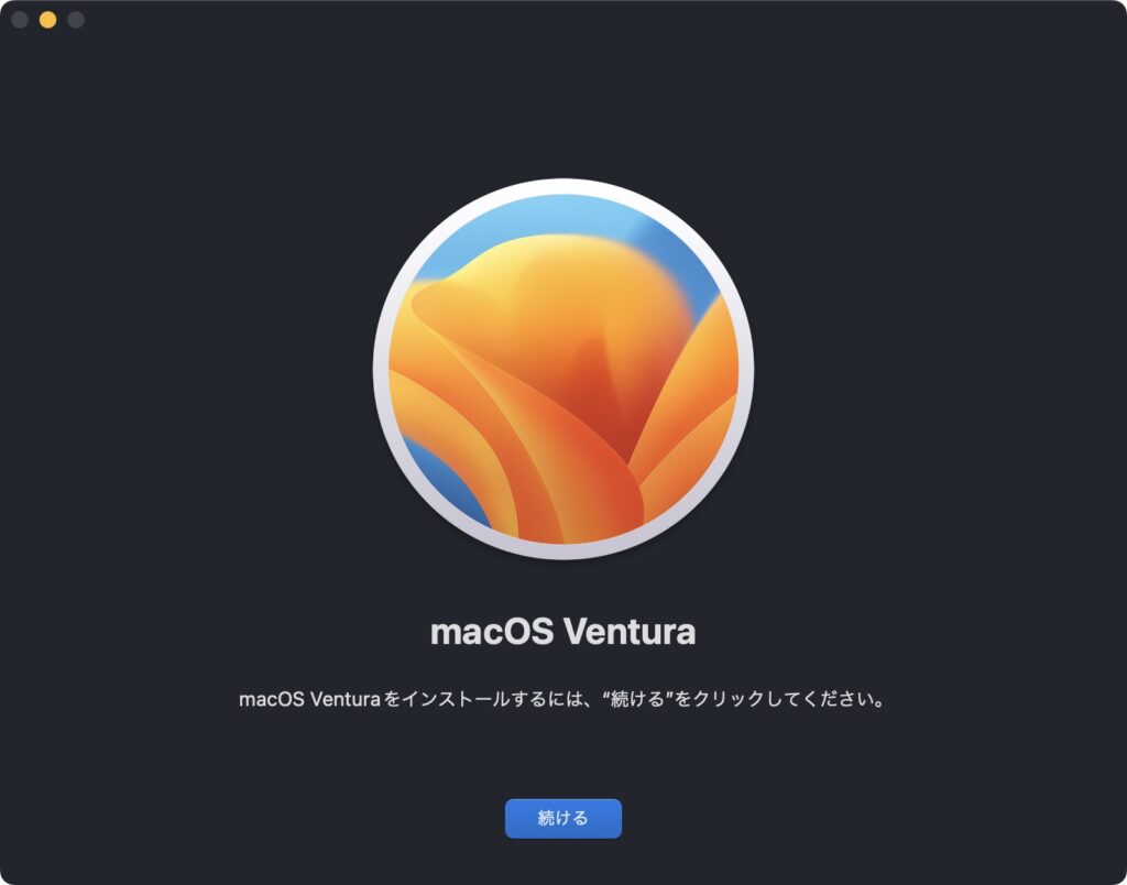 アップデートが終わるとインストーラを作成に必要なファイルが消えるので、以下の画面の「続ける」をする前に実施します。
