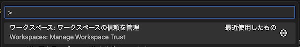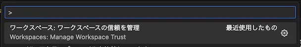 コマンドパレット(Windows なら Shift + Ctrl + P、Mac なら Shift + Command + P)から「Workspace: Manage Workspace Trust」を選択します。