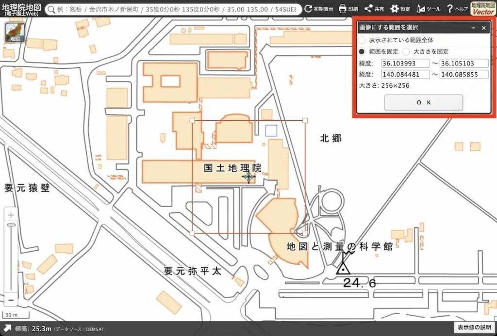 国土地理院のサイトで出来たんですが、見慣れた Google Map の画像にしたい。でも、緯度経度を決めてのスクショは厳しい。