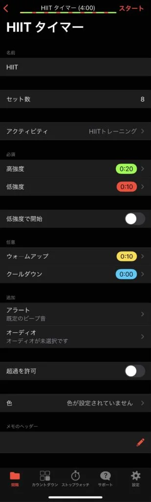「HIIT タイマー」をタップ