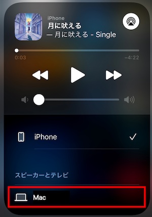2.「スピーカーとテレビ」の下に Mac(Macのコンピュータ名)が出るのでタップします。