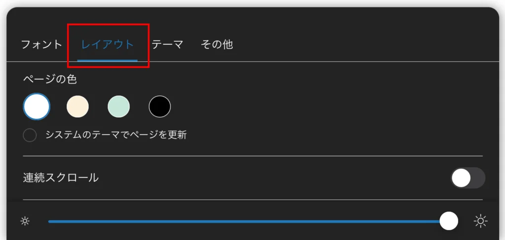 ページの色を変更できない本もあり、その場合は「レイアウト」自体表示されませんでした。