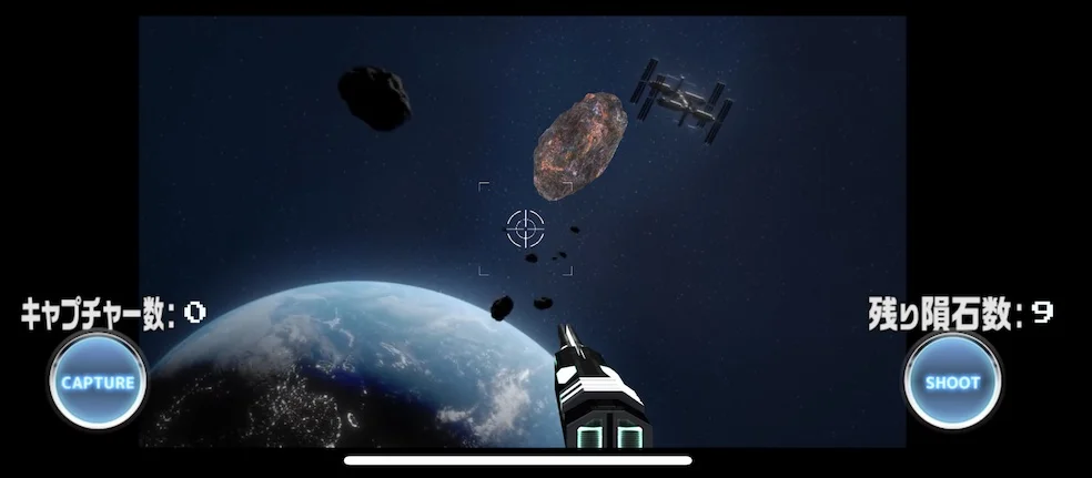- 隕石が画面中央に入ったら右下の「SHOOT」をタップ