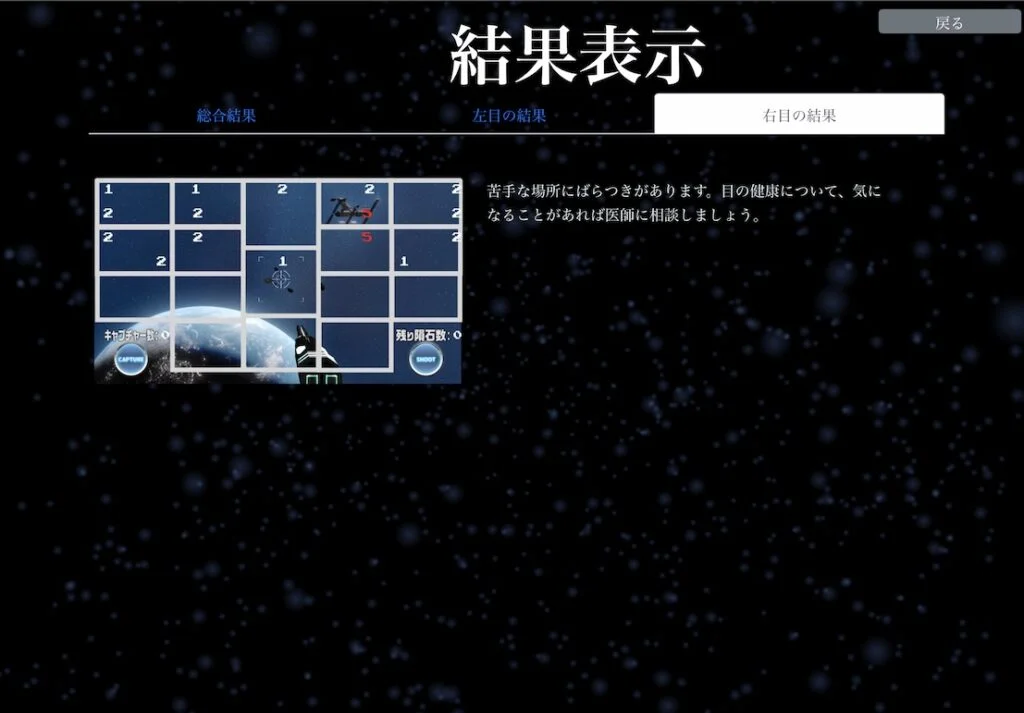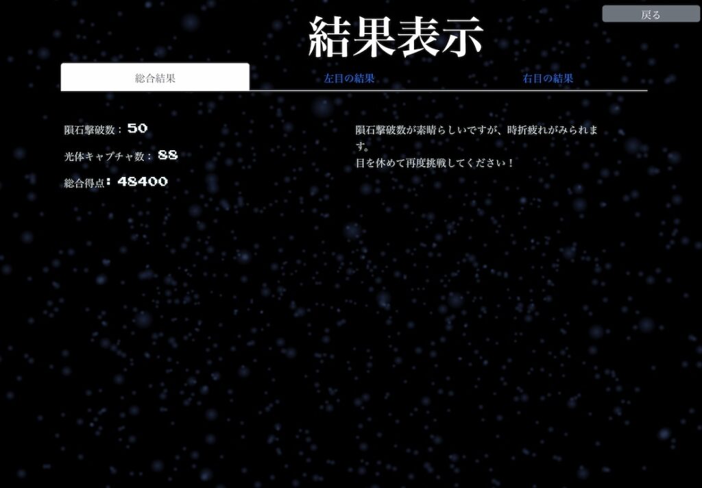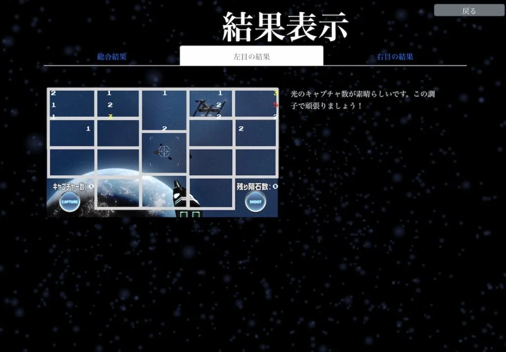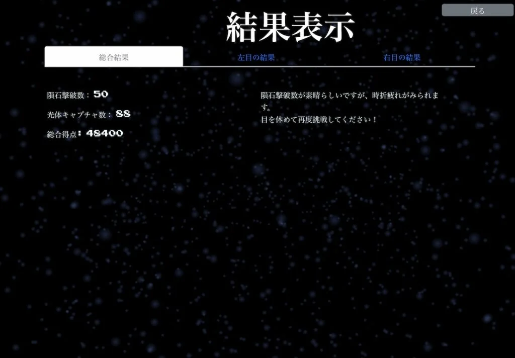 「目の健康状態を判定するゲームアプリ METEOR BLASTER」